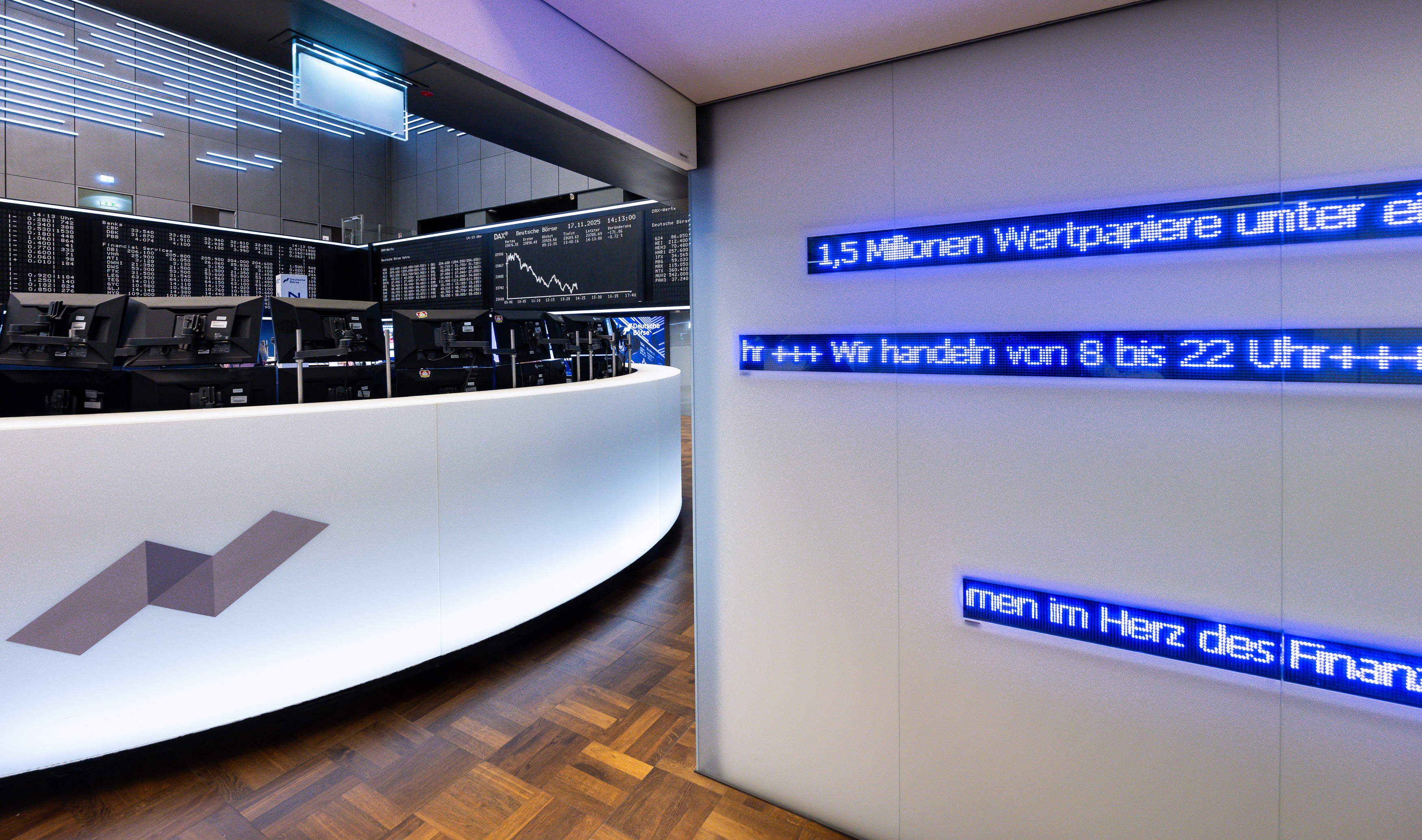 Hier finden Sie Fotos der Deutsche Börse Group sowie Video- und Audio-Footage des Handelssaals der Frankfurter Wertpapierbörse. Die Medien können für journalistische Zwecke mit der Quellenangabe „Deutsche Börse Group“ bzw. des im jeweiligen Foto enthaltenen Copyright-Vermerks kostenfrei verwendet werden. Eine Nutzung zu sonstigen gewerblichen oder eigenen Werbezwecken ist nicht gestattet.