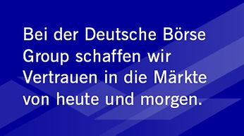 Vertrauen ist die Grundbedingung für funktionierende Märkte und eine zukunftsfähige Wirtschaft. Die Deutsche Börse Group sorgt für transparente, verlässliche und stabile Infrastrukturen, die Sicherheit und Effizienz auf den Märkten weltweit garantieren. Mit dem Betreiben funktionierender Märkte tragen wir zu Wachstum und Wohlstand künftiger Generationen bei.