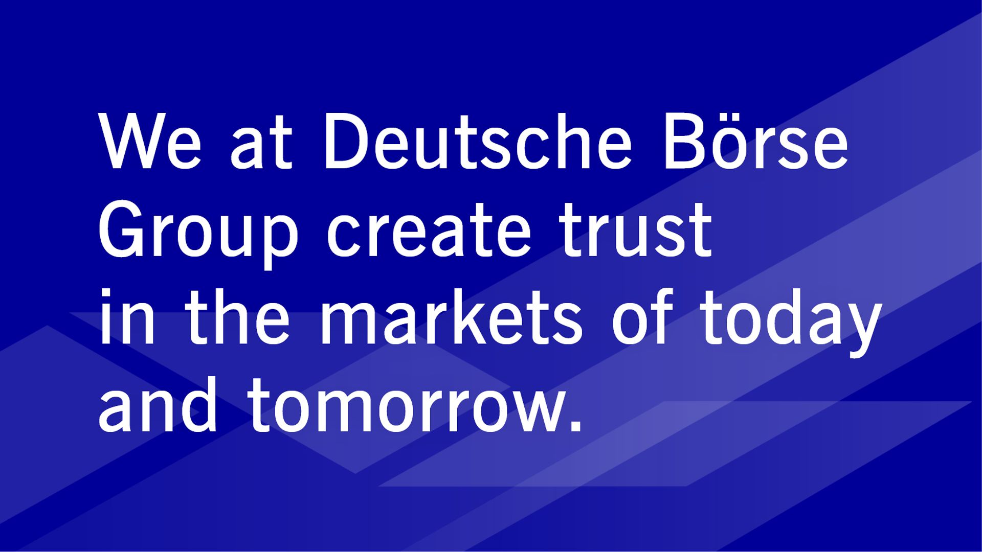 As an international exchange organization and innovative market infrastructure provider, Deutsche Börse Group ensures capital markets characterized by integrity, transparency and stability. Our business areas cover the entire financial market transaction process chain.