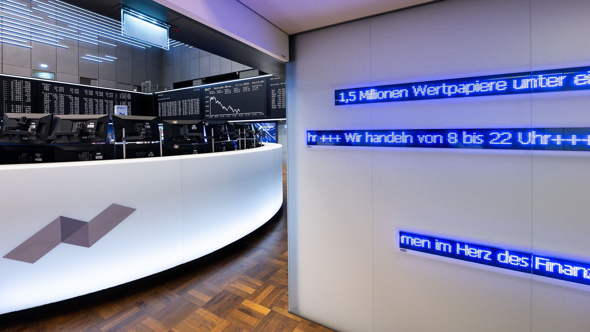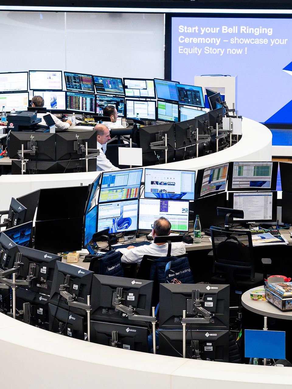Hier finden Sie Fotos der Deutsche Börse Group sowie Video- und Audio-Footage des Handelssaals der Frankfurter Wertpapierbörse. Die Medien können für journalistische Zwecke mit der Quellenangabe „Deutsche Börse Group“ bzw. des im jeweiligen Foto enthaltenen Copyright-Vermerks kostenfrei verwendet werden. Eine Nutzung zu sonstigen gewerblichen oder eigenen Werbezwecken ist nicht gestattet.