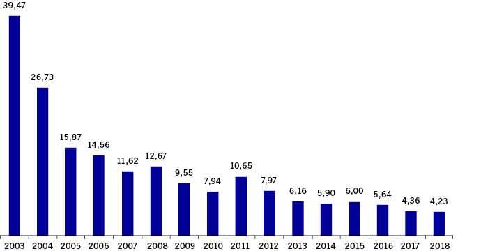 Die zunehmende Liquidität im ETF-Handel hat zu deutlich geringeren Transaktionskosten für Investoren und Händler geführt. Die folgende Grafik zeigt, wie durch die gestiegene Liquidität im ETF-Handel der letzten Jahre die impliziten Transaktionskosten um 86 % gesunken sind; sie liegen heute durchschnittlich unter 6 Basispunkte je ETF für die 20 liquidesten Aktien-ETFs. Bluechip-ETFs auf DAX oder EURO STOXX 50 sind die liquideste Instrumentengruppe überhaupt im Xetra-Handel und übertreffen sogar die meistgehandelten DAX-Einzelwerte.