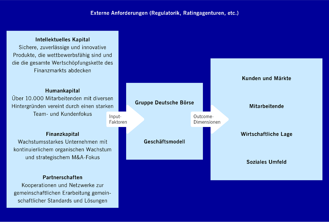 Der Unternehmenszweck der Deutsche Börse Group ist es, Vertrauen in die Märkte von heute und morgen zu schaffen, in dem sie zuverlässige, stabile, faire und transparente Infrastrukturen bereitstellt, die die Sicherheit und Effizienz der globalen Kapitalmärkte gewährleisten. Der Nachhaltigkeitsauftrag ist tief im Unternehmenszweck verwurzelt. Im Zentrum der Kapitalmärkte und der Technologie ist die Deutsche Börse Group in der Lage, Unternehmen und Investoren bei der Erreichung ihrer ESG-Ziele zu unterstützen. Ziel ist es, für die Kunden der vertrauenswürdige Partner ihrer Wahl bei ihrer grünen Transformation sein. Dies spiegelt sich auch in der gruppenweiten, ganzheitlichen Nachhaltigkeitsstrategie wider: