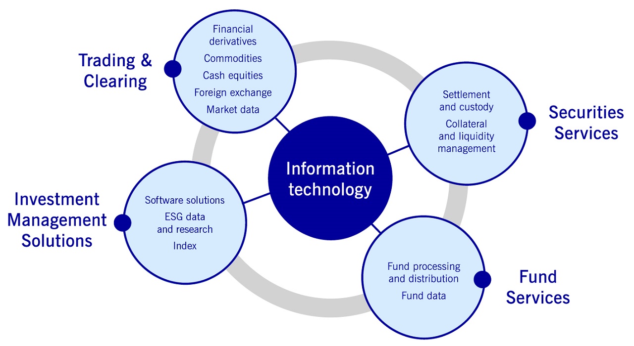 Our business areas cover the entire financial market transaction process chain. They can be assigned to four areas which are described in more detail below.